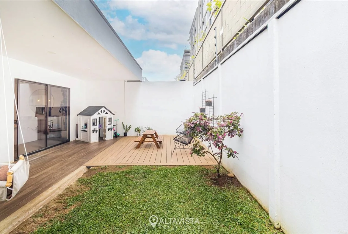 Diseño pensado para el hogar contemporáneo La casa destaca por su distribución fluida y funcional. El área social se integra perfectamente con una terraza techada y un amplio jardín posterior, ideal para disfrutar del clima fresco de Curridabat. La ventaja competitiva de esta unidad es su pasillo lateral, que garantiza mayor privacidad y facilidad de mantenimiento.