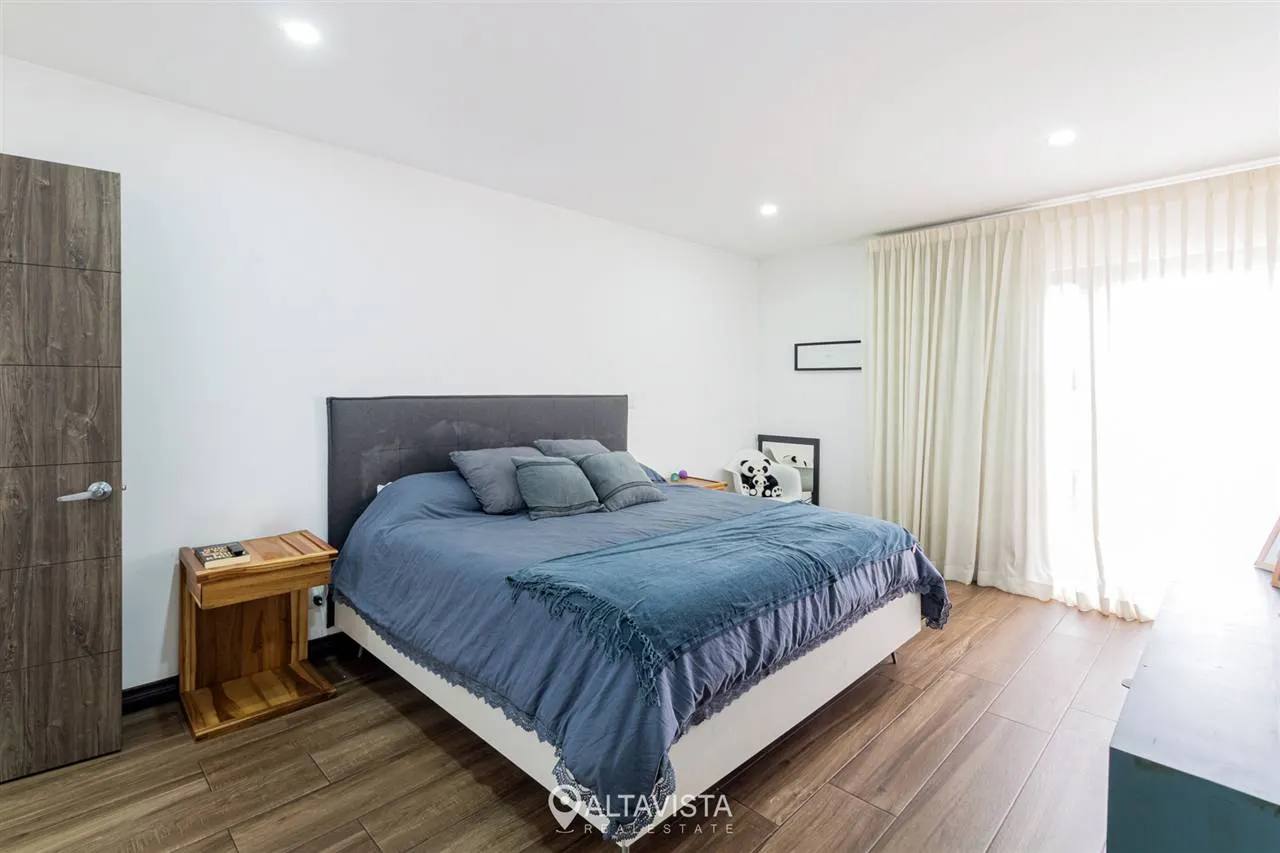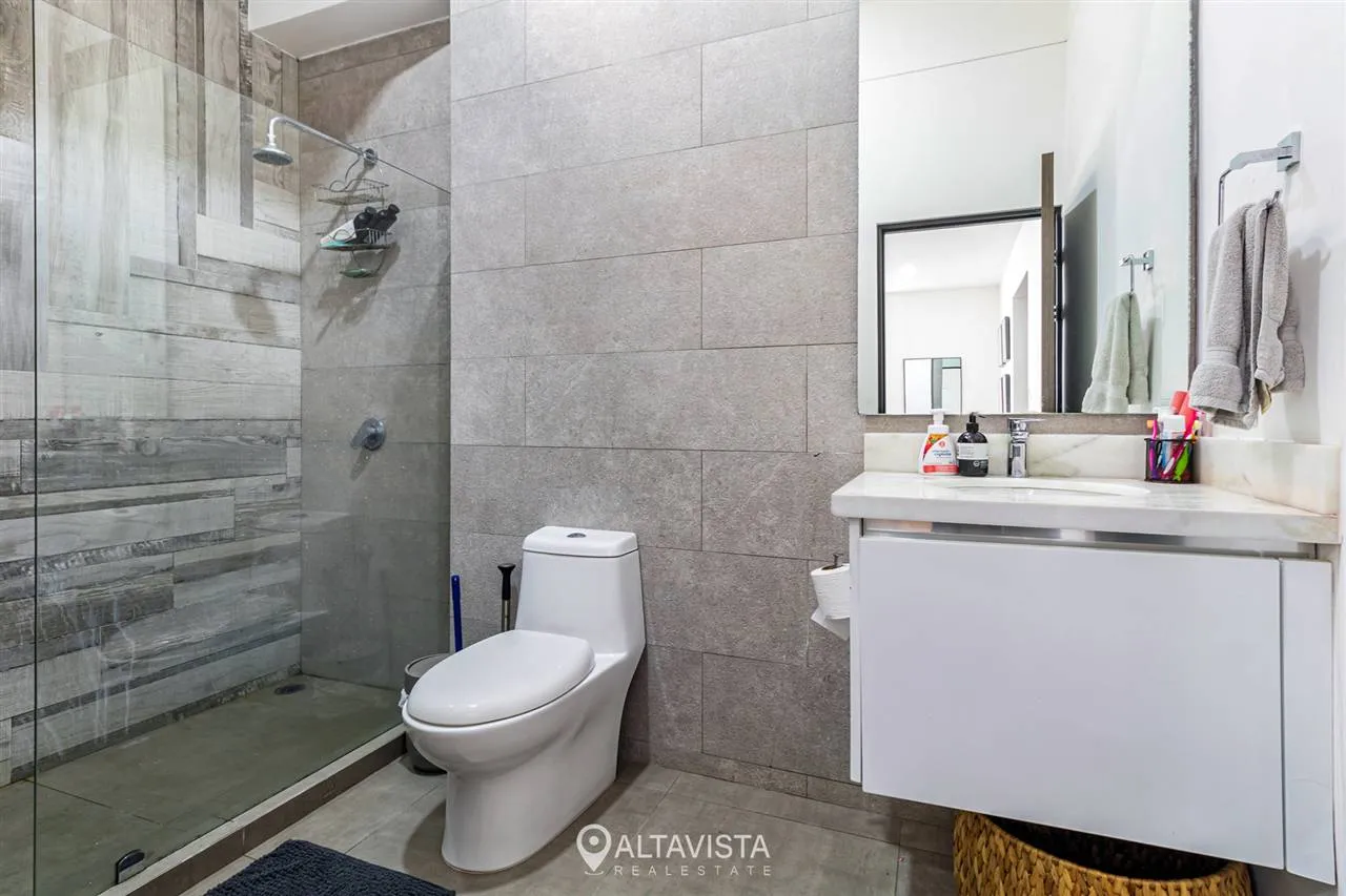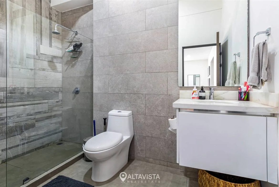 En la planta alta, las tres habitaciones ofrecen el refugio perfecto, destacando la principal con su amplio walk-in closet. Todo esto dentro de un entorno seguro con amenidades de primer nivel que incluyen cancha de tenis, gimnasio equipado y piscina recreativa.