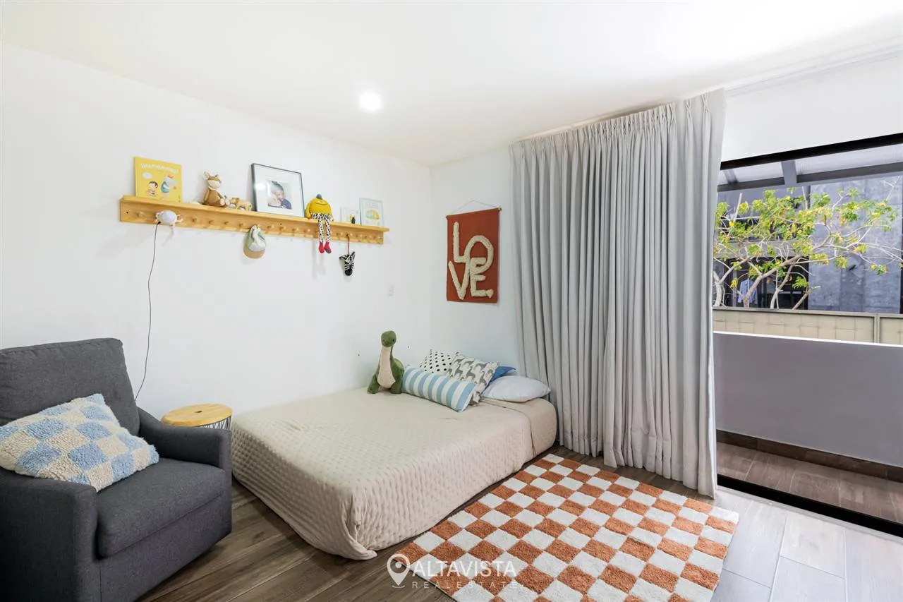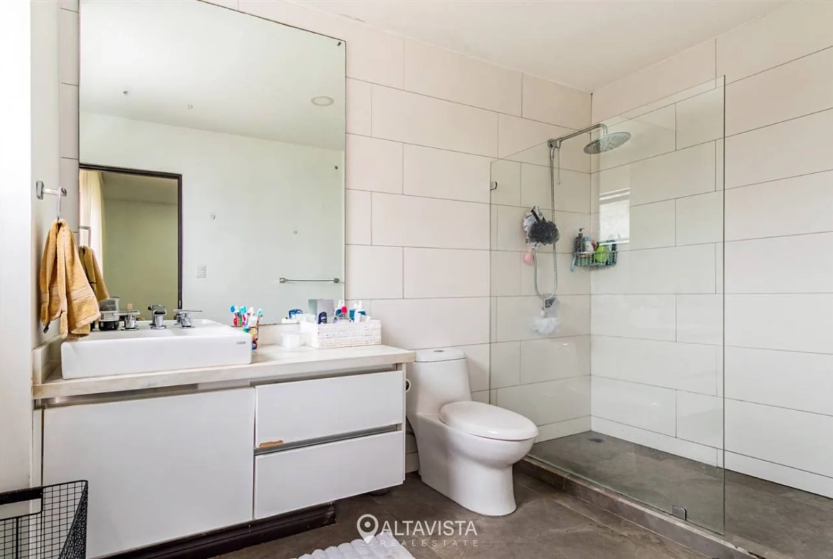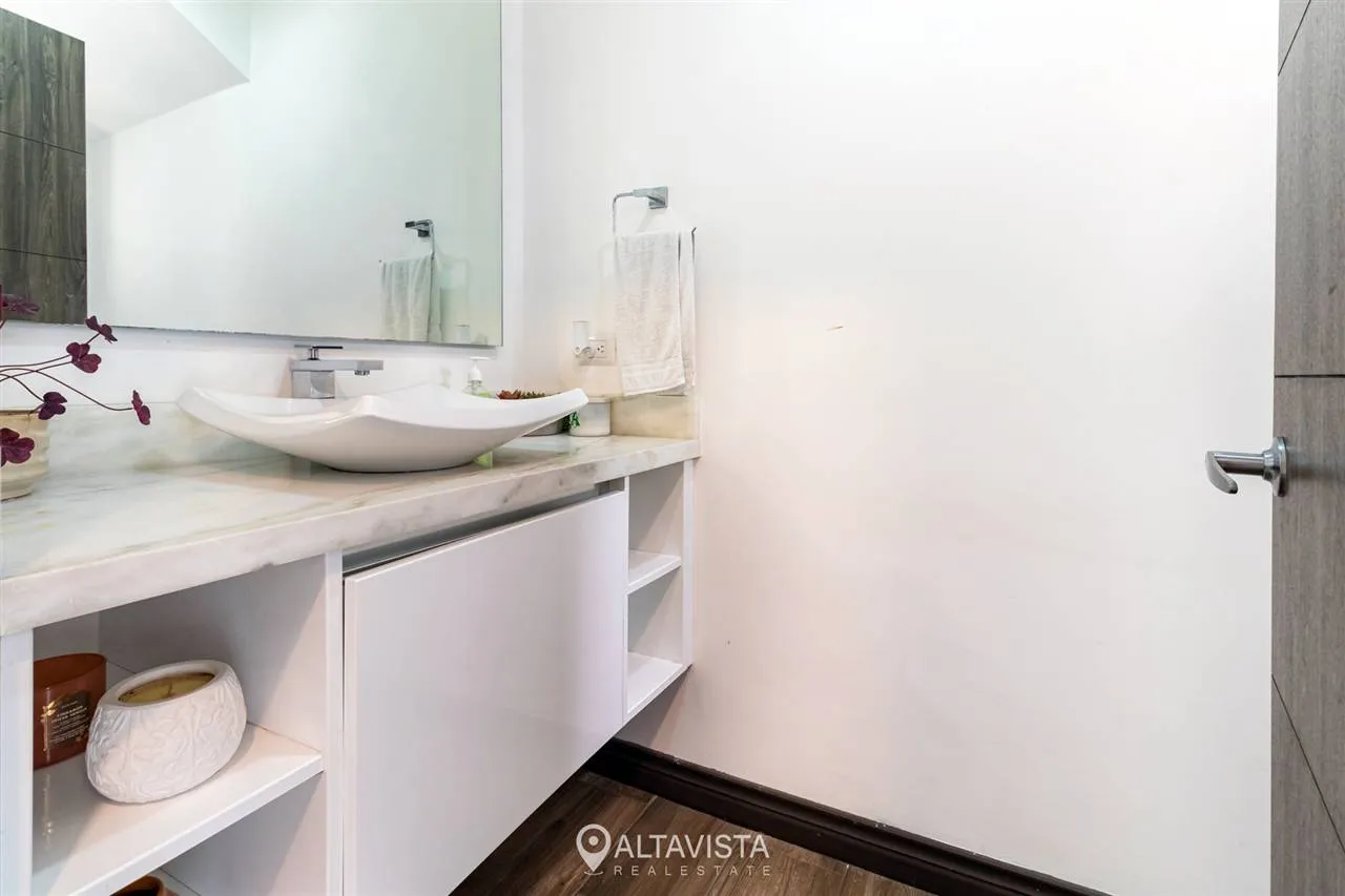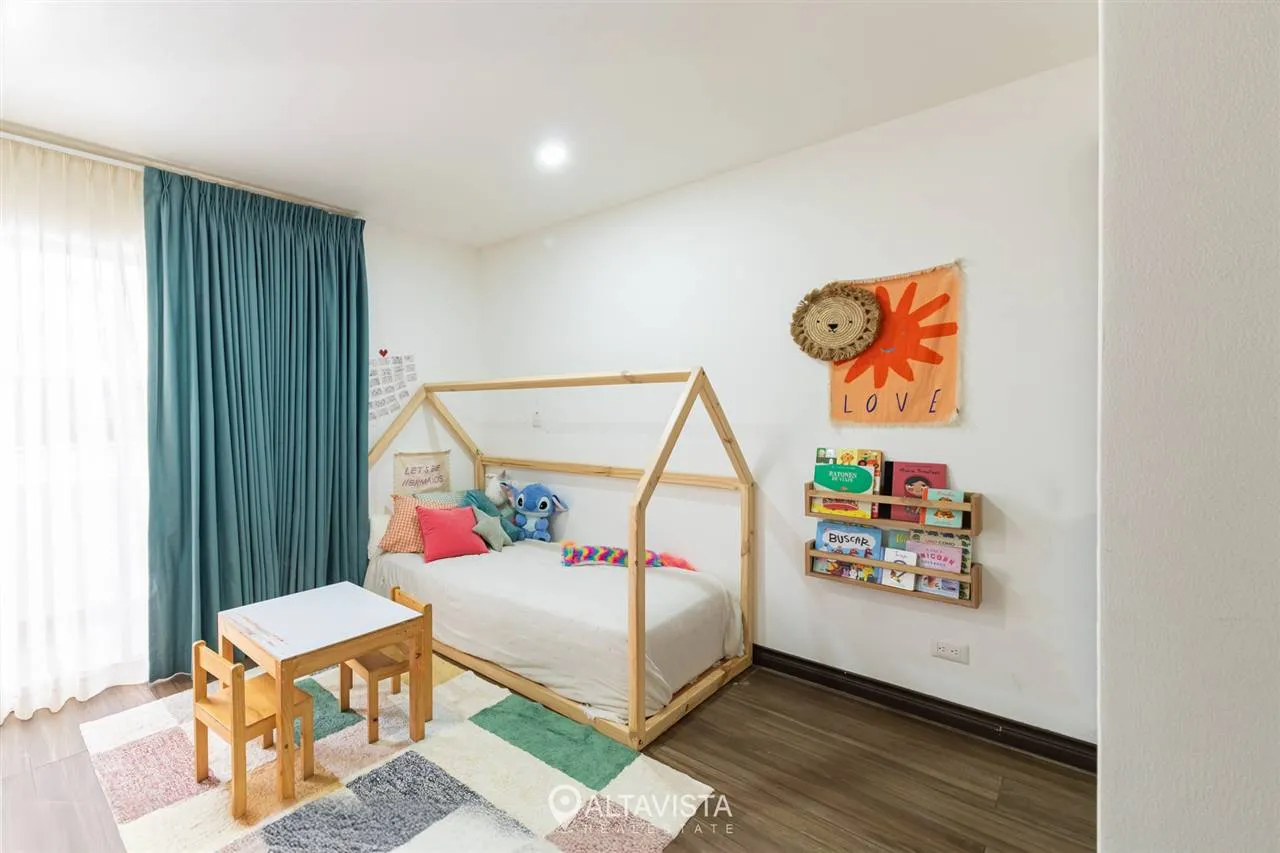 En la planta alta, las tres habitaciones ofrecen el refugio perfecto, destacando la principal con su amplio walk-in closet. Todo esto dentro de un entorno seguro con amenidades de primer nivel que incluyen cancha de tenis, gimnasio equipado y piscina recreativa.