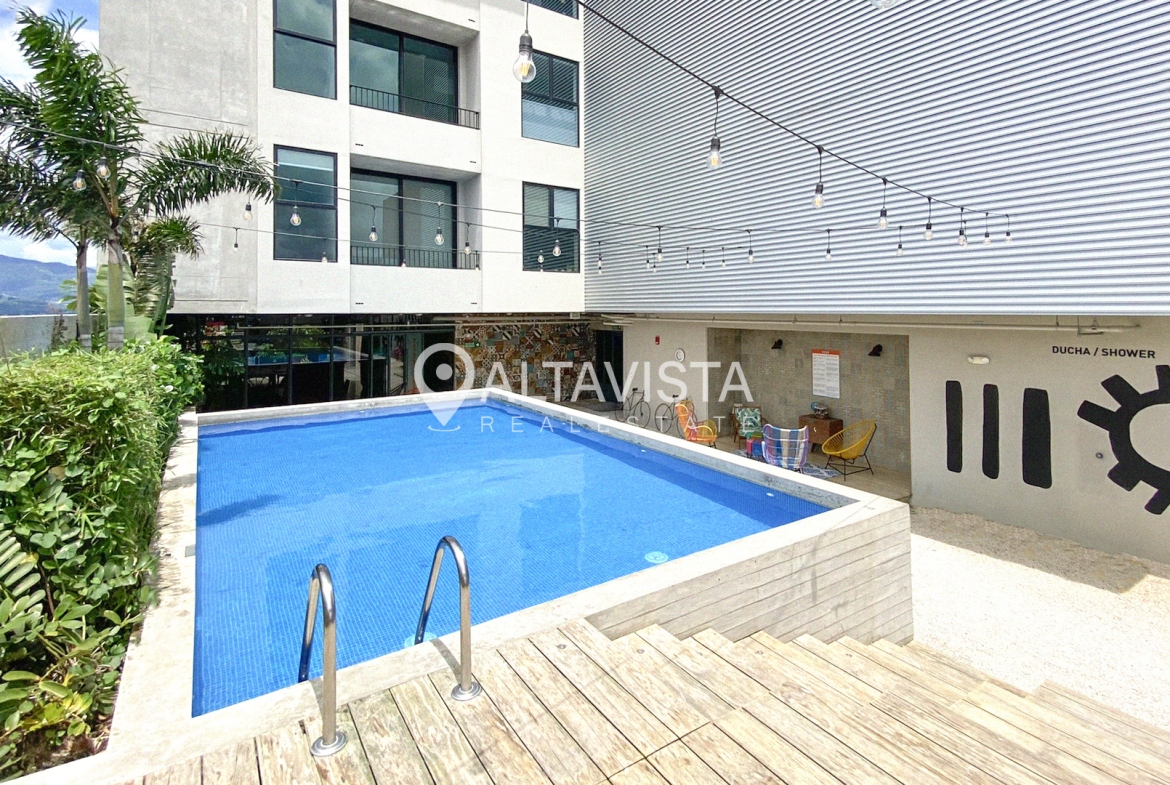 En el Condominio URBN Escalante contamos con un bello apartamento a la venta en el piso 15 con vista al centro de San José. El apartamento URBN Escalante San José, está inspirado en diseño semi industrial con pisos de concreto lujado, sobres de cocina y baños en cuarzo, ventanería exterior insolada. La distribución es una habitación, un baño , cocina, sala y balcón.