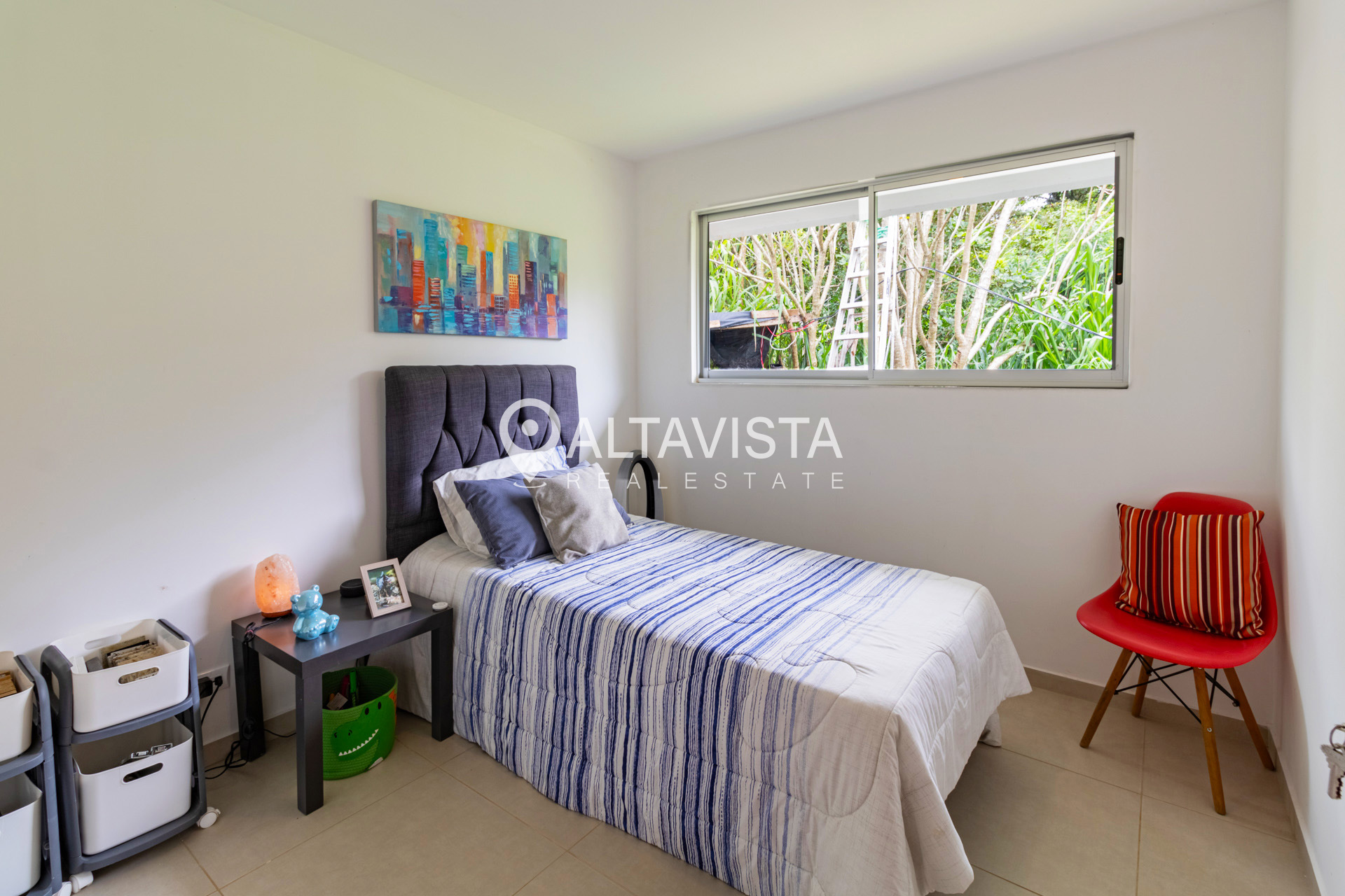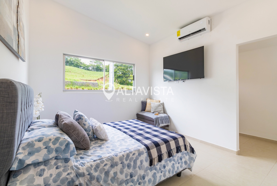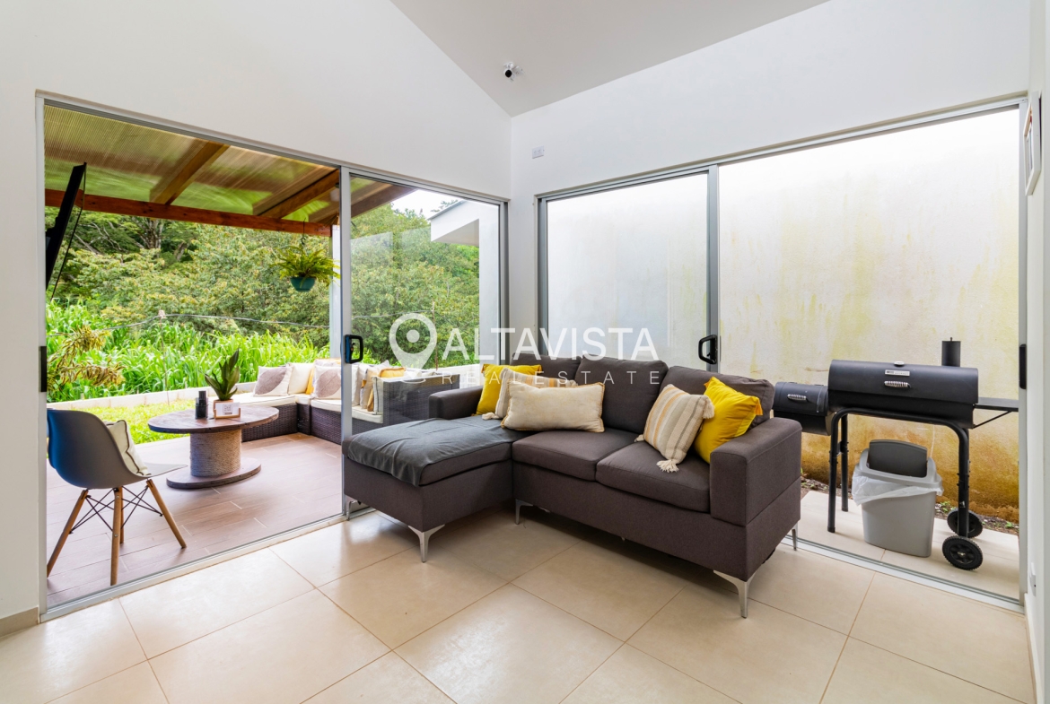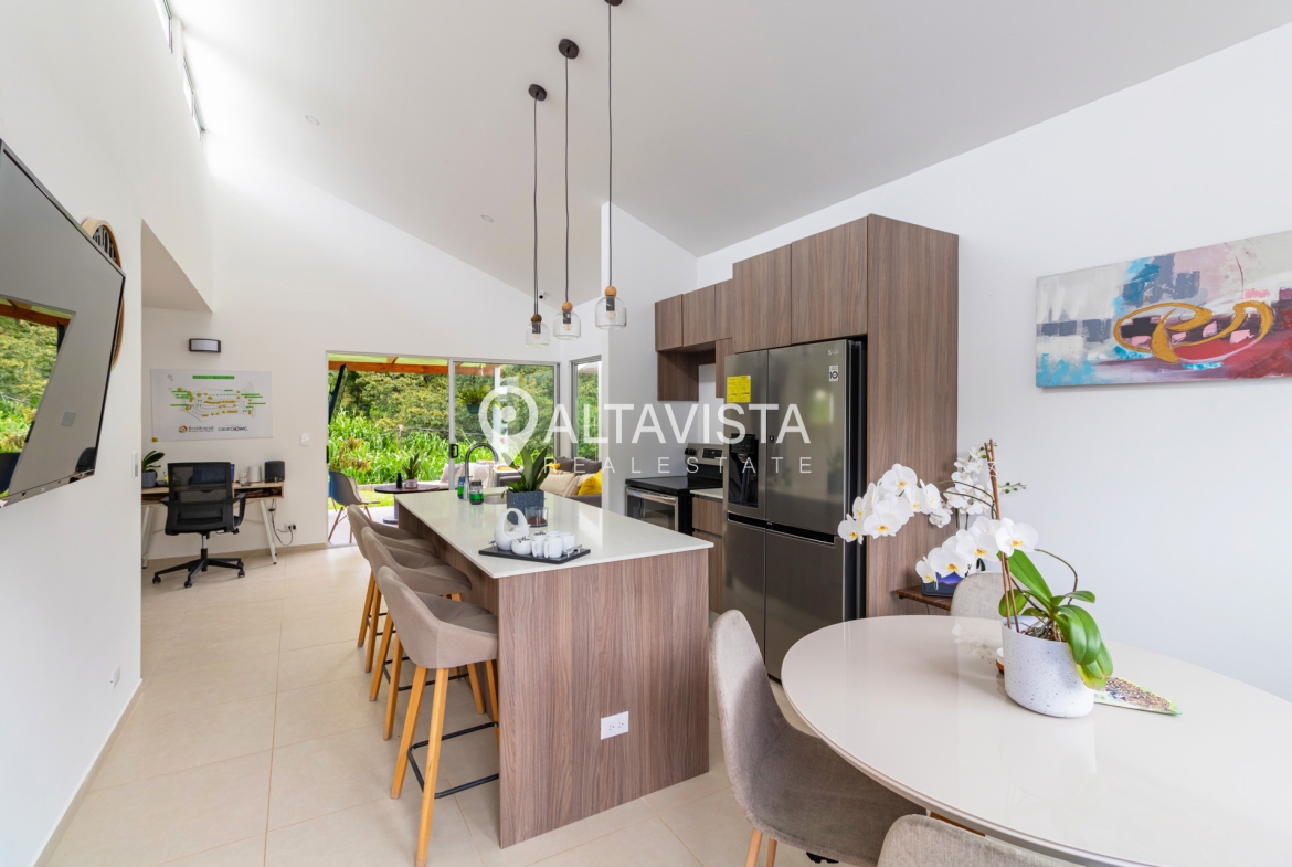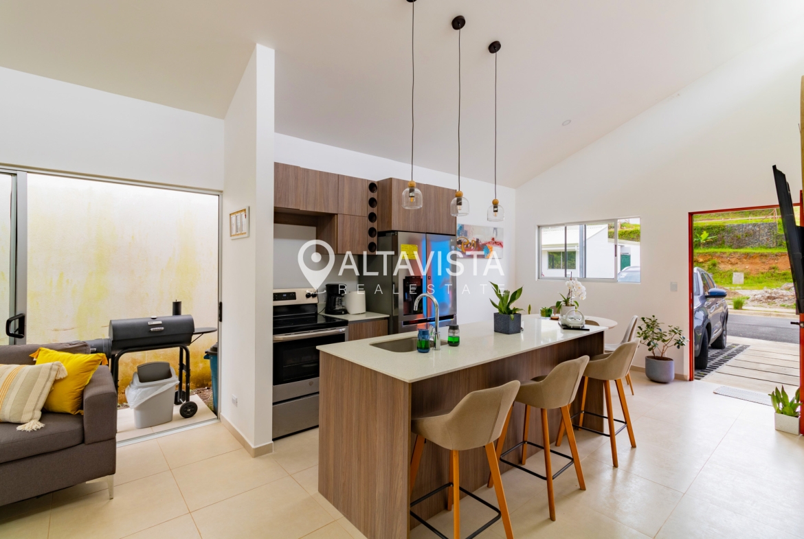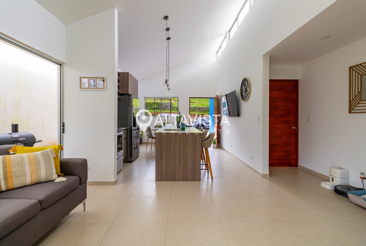 En el Condominio Bosques de San Miguel en Turrúcares, encontramos esta espaciosa vivienda de un solo nivel con tres habitaciones, dos baños completos, amplia cocina con isla y sobres de cuarzo, terraza, área de lavado, espacioso jardín, ático y parqueo para 2 autos.